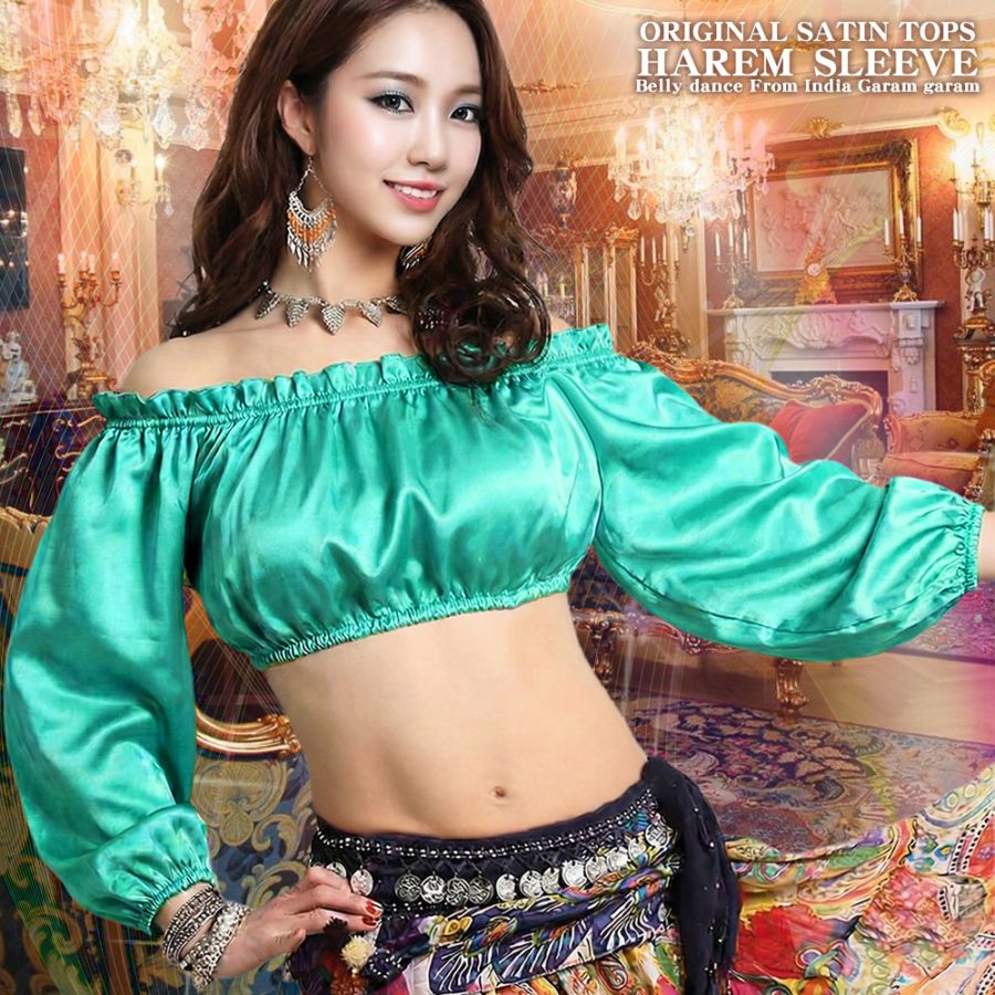ハーレムスリーブ プレーンカラー エディションオリジナル サテン トップス