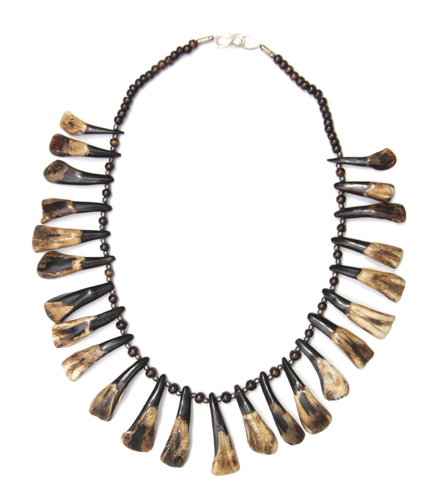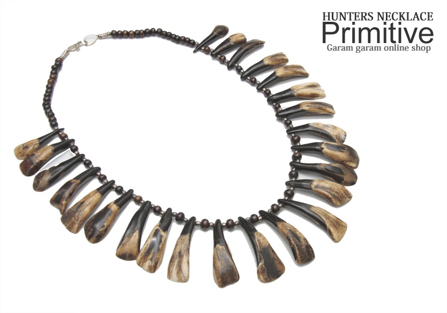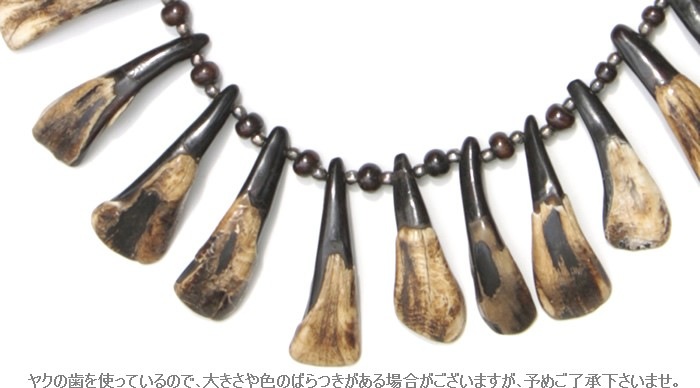 本物のヤクの齒とウッドビーズを使った、大迫力のネックレス!!