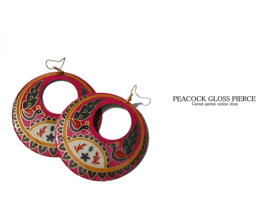 つやつやっとしたポップなカラーに、可愛らしい孔雀が向かい合って描かれたデザインです。