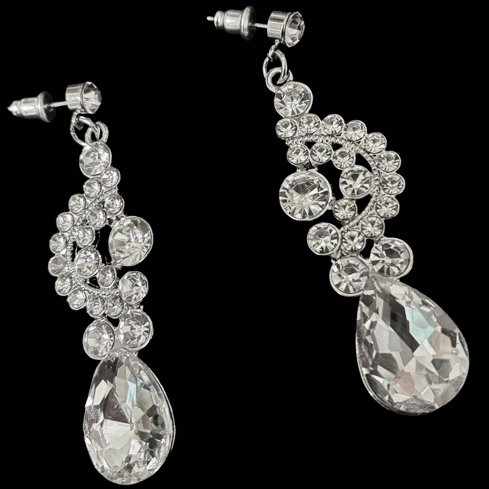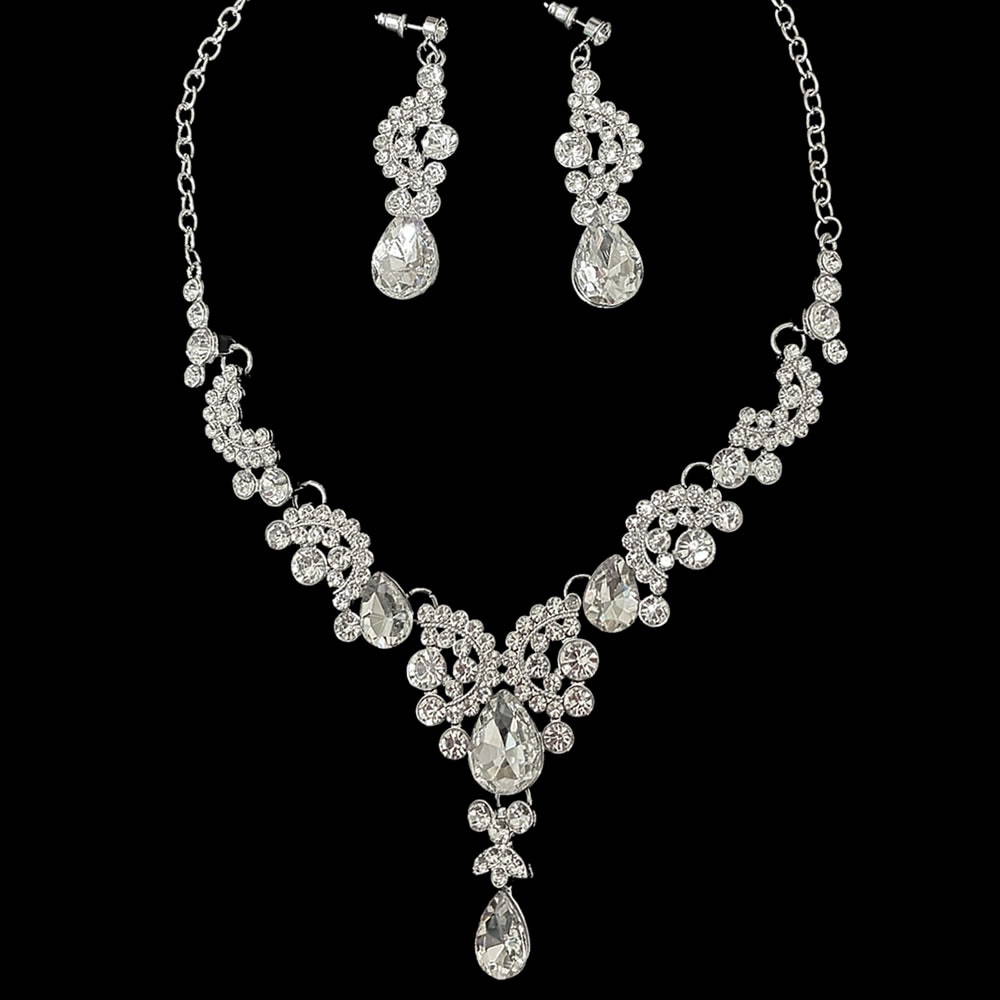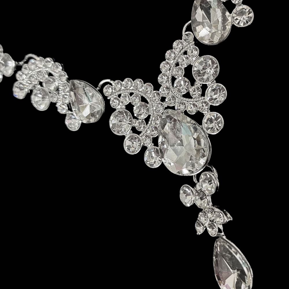 シルバー ドロップ クリスタル ネックレス ピアス セット